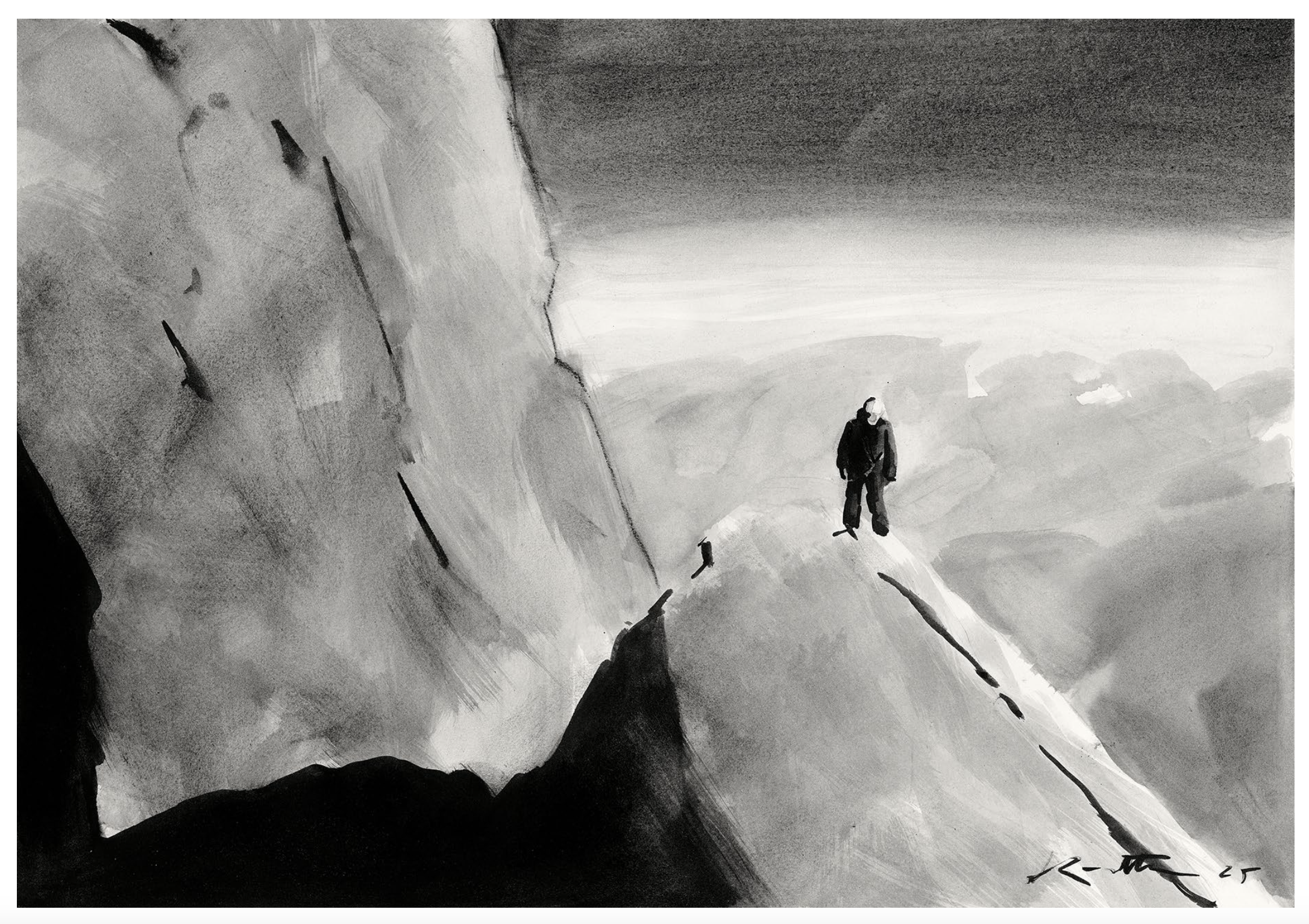 Tirage fine art reproduisant l'aquarelle originale Traversée de la Meije de Jean-Marc Rochette, 2025.