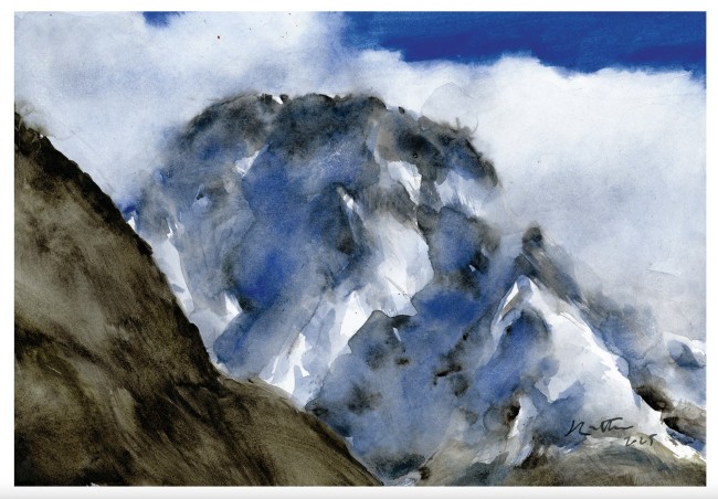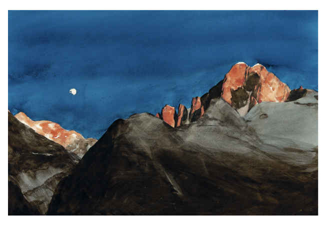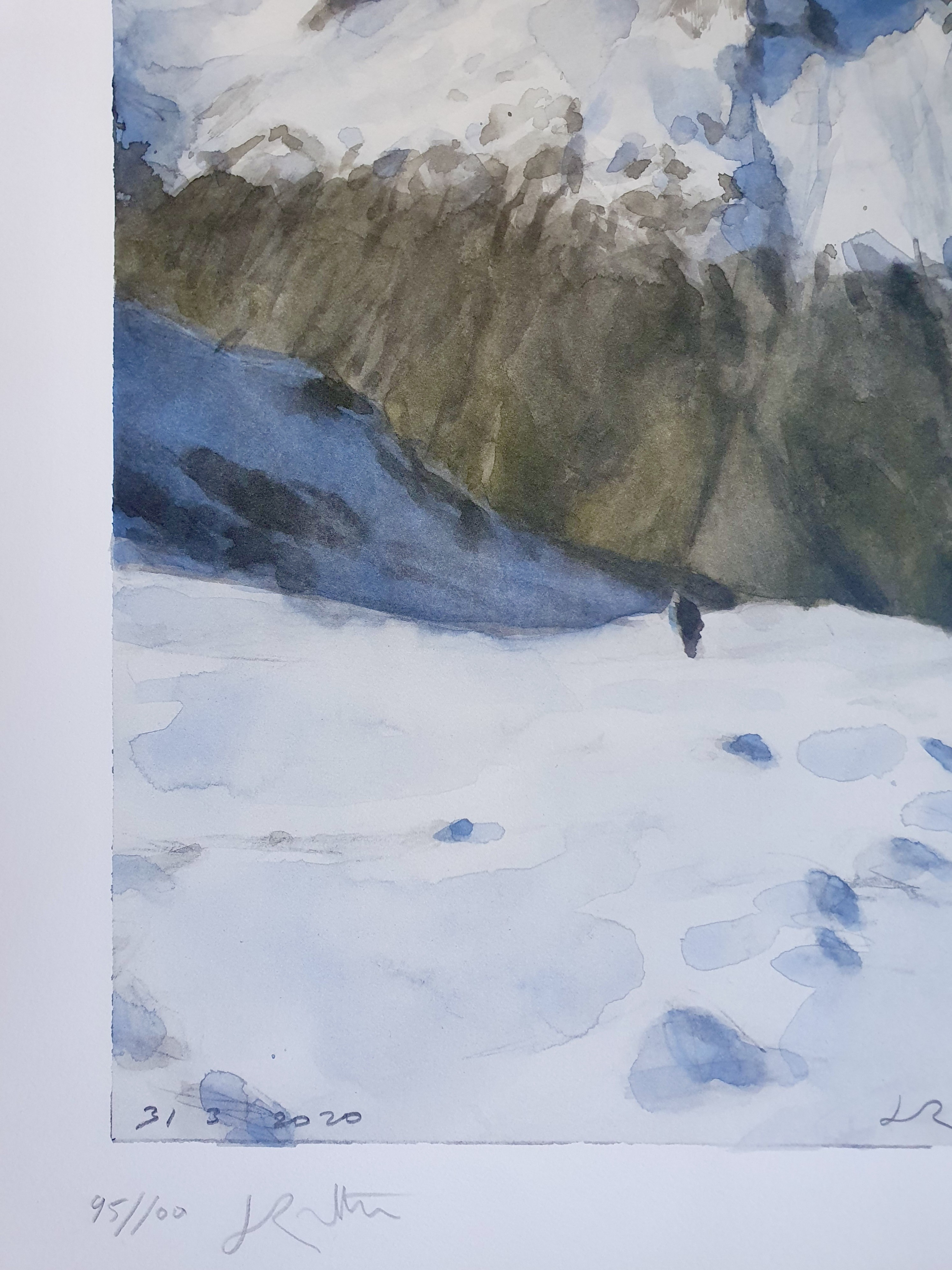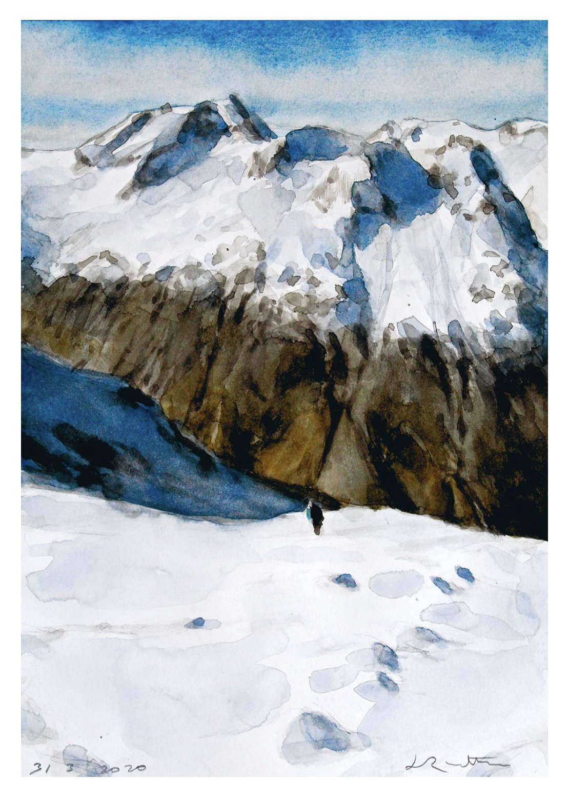 Tirage fine art reproduisant l'aquarelle originale Montée au col de la Temple de Jean-Marc Rochette, 2020.
