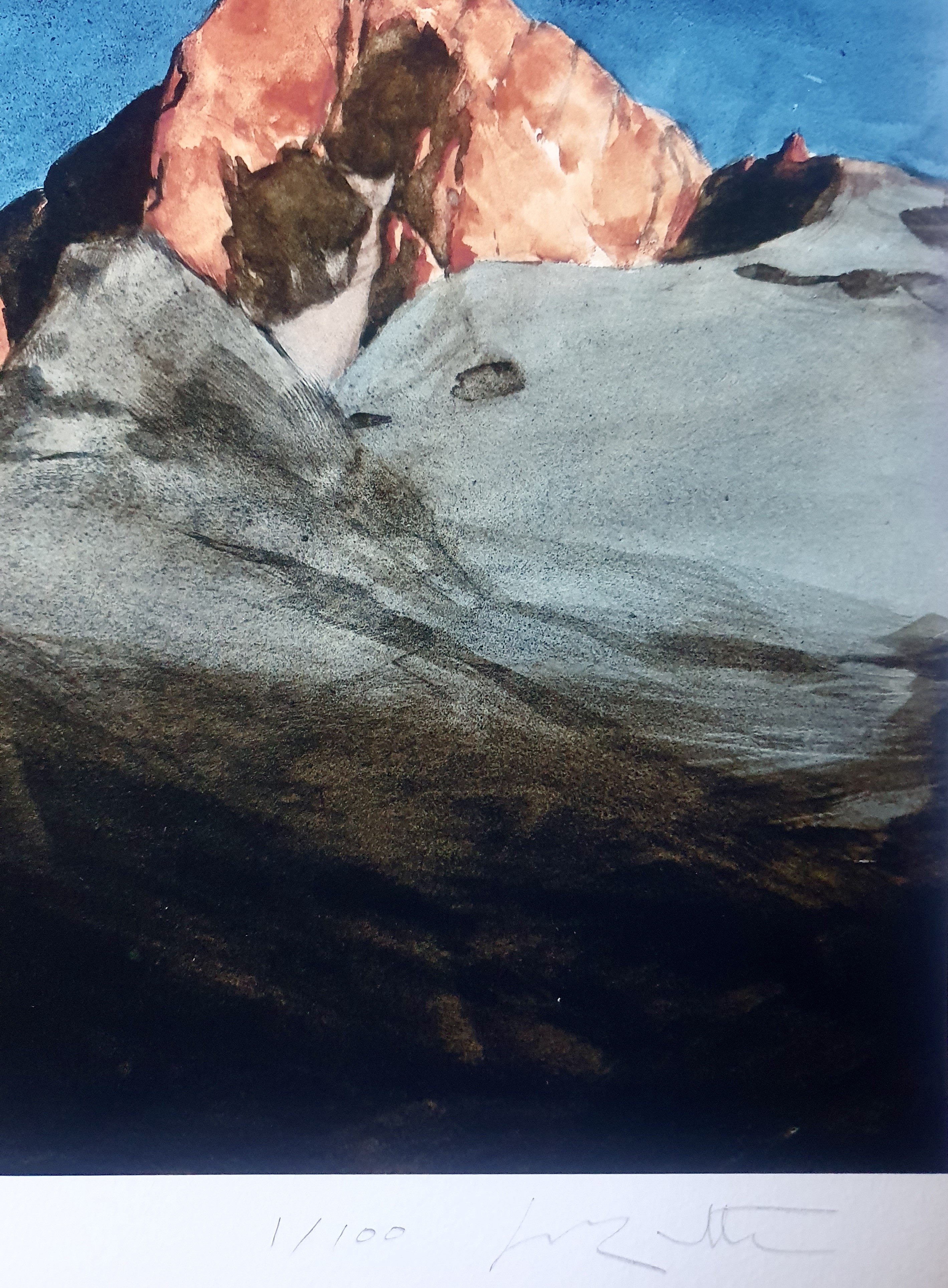 (la photo de présentation, issue d'un fichier de qualité d'impression, donne un bon apperçu des couleurs du tirage, même s'il n'a pas valeur contractuelle / la photo de la signature atteste uniquement que le tirage est numéroté et signé par l'artiste)